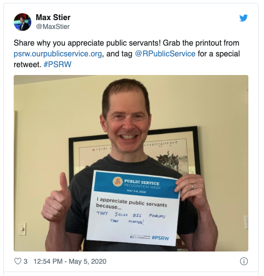 Here are some highlights of the ways that the Partnership and federal leaders used social media during Public Service Recognition Week to thank public servants for their dedication and support, which is especially critical now as the nation battles the coronavirus pandemic.