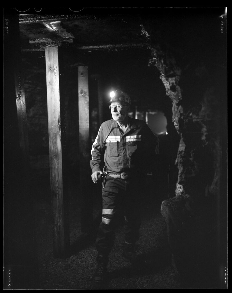 Christopher Mark inside the Phillips-Sprague Mine, also known as the Beckley Exhibition Coal Mine, in July in Beckley, W.Va. (Kent Nishimura for The Washington Post)