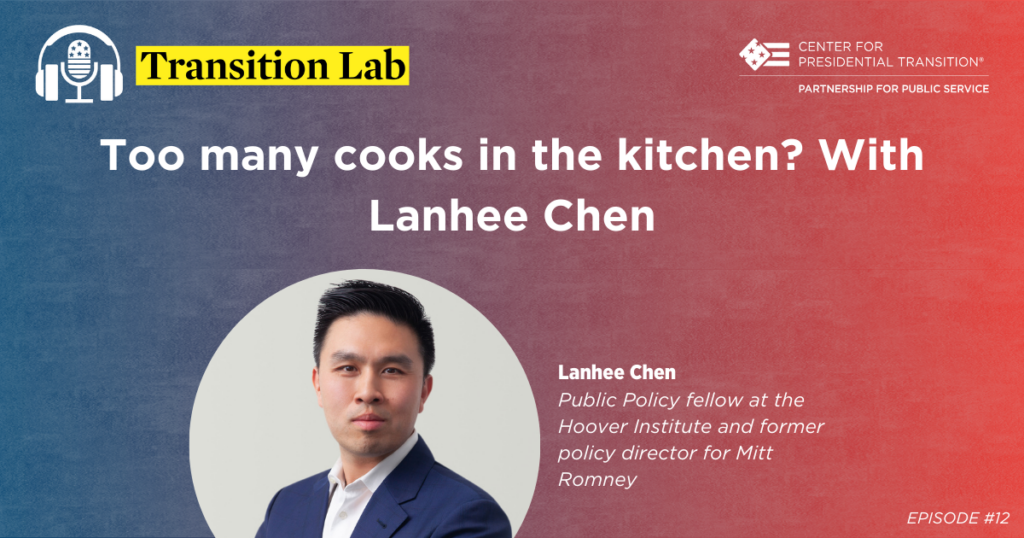 Assigning one job to two people can be a recipe for disaster. Yet, presidential candidates typically have two policy teams—one for the campaign operation and one for the transition operation. Campaigns already do policy work, so why does a transition need a policy team, too? Today on “Transition Lab,” we’re joined by Lanhee Chen, the policy director for Mitt Romney’s 2012 presidential campaign, to talk about the differences between these teams, why they’re both essential to a successful transition and how they should work together.