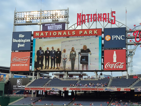 The recognition helped mark Federal Workforce Night at Nationals Park, an annual tradition that celebrates federal employees and the work they do on behalf of the nation.