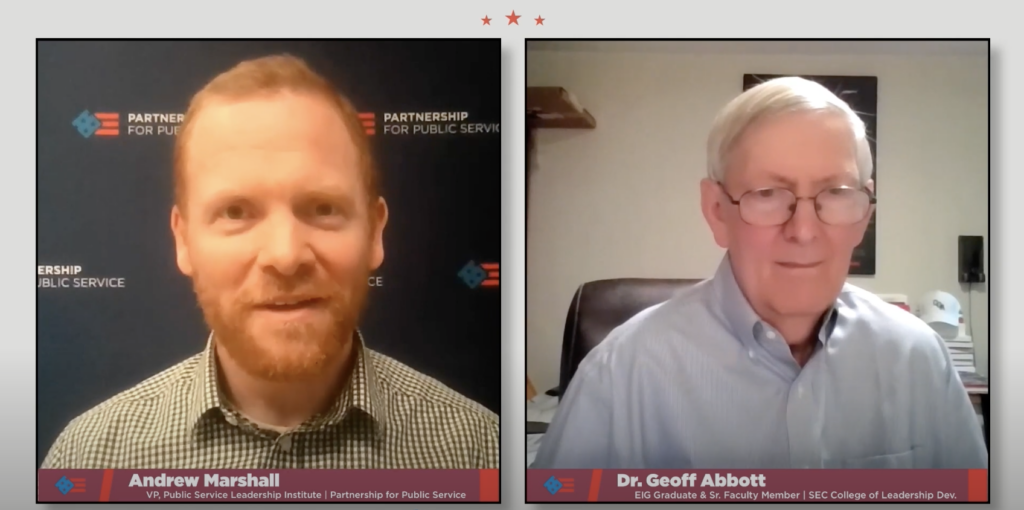 Recently, the Partnership sat down with Geoff Abbott, a senior faculty member at the Securities and Exchange Commission’s College of Leadership Development and an EIG graduate, discussed the benefits of the EIG program.