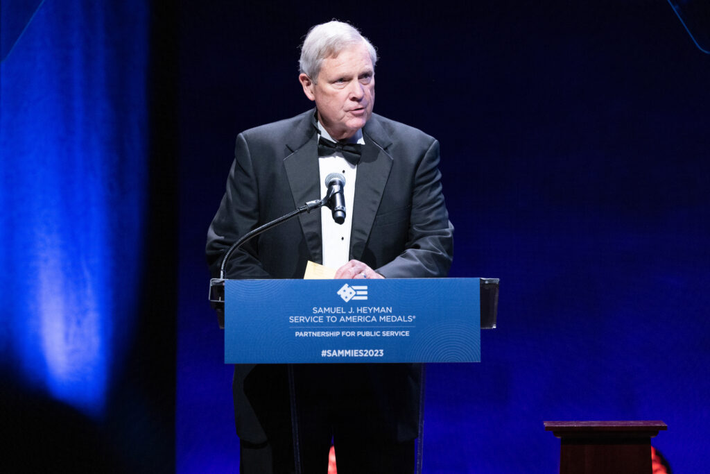 Secretary of Agriculture Tom Vilsack introduced Woodruff, characterizing journalists as “defenders, promoters and preservers of our democracy,” while Sally Buzbee, executive editor of The Washington Post interviewed Woodruff about her work.