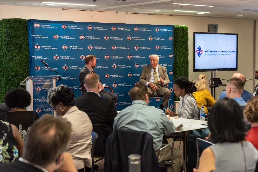 During the day’s first session, Sean O’Keefe, former NASA administrator and Secretary of the Navy, spoke about his motivation for choosing a career in public service, and the unique influence federal employees have.