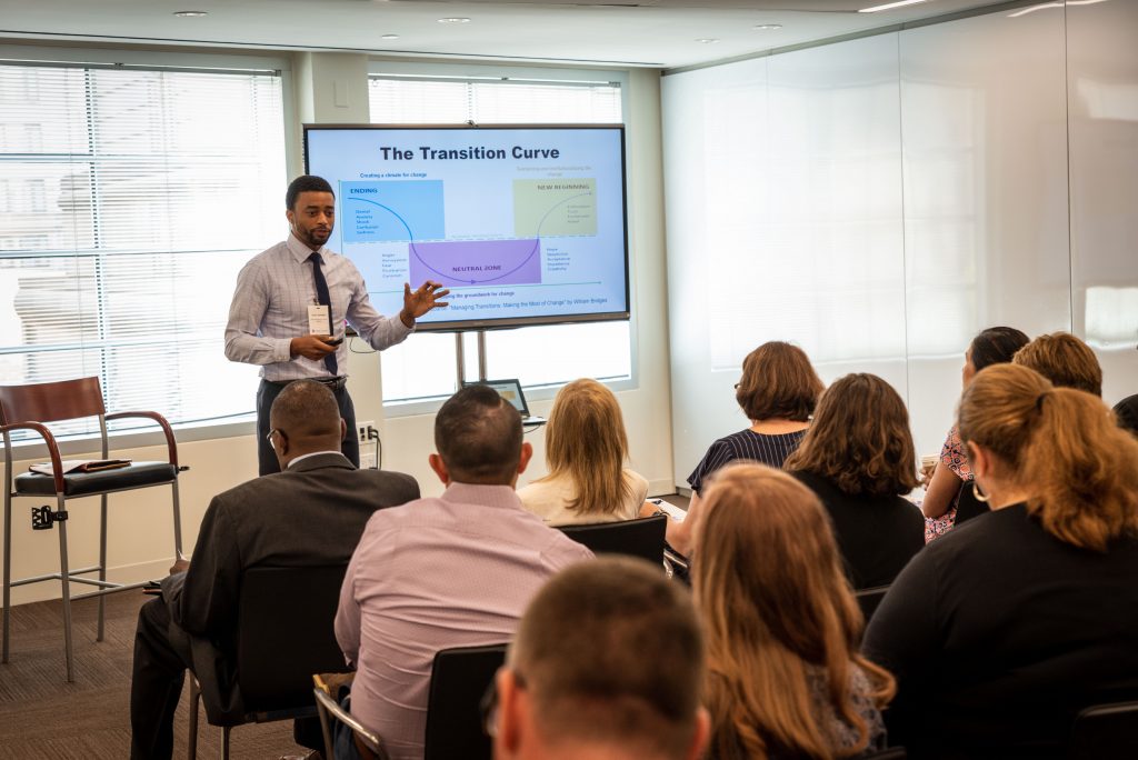 In the change management session, led by Kevin Johnson, the Partnership’s senior manager for business functional programs, alumni discussed a framework to identify the types of tools and people needed to lead through change.